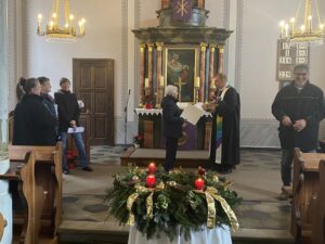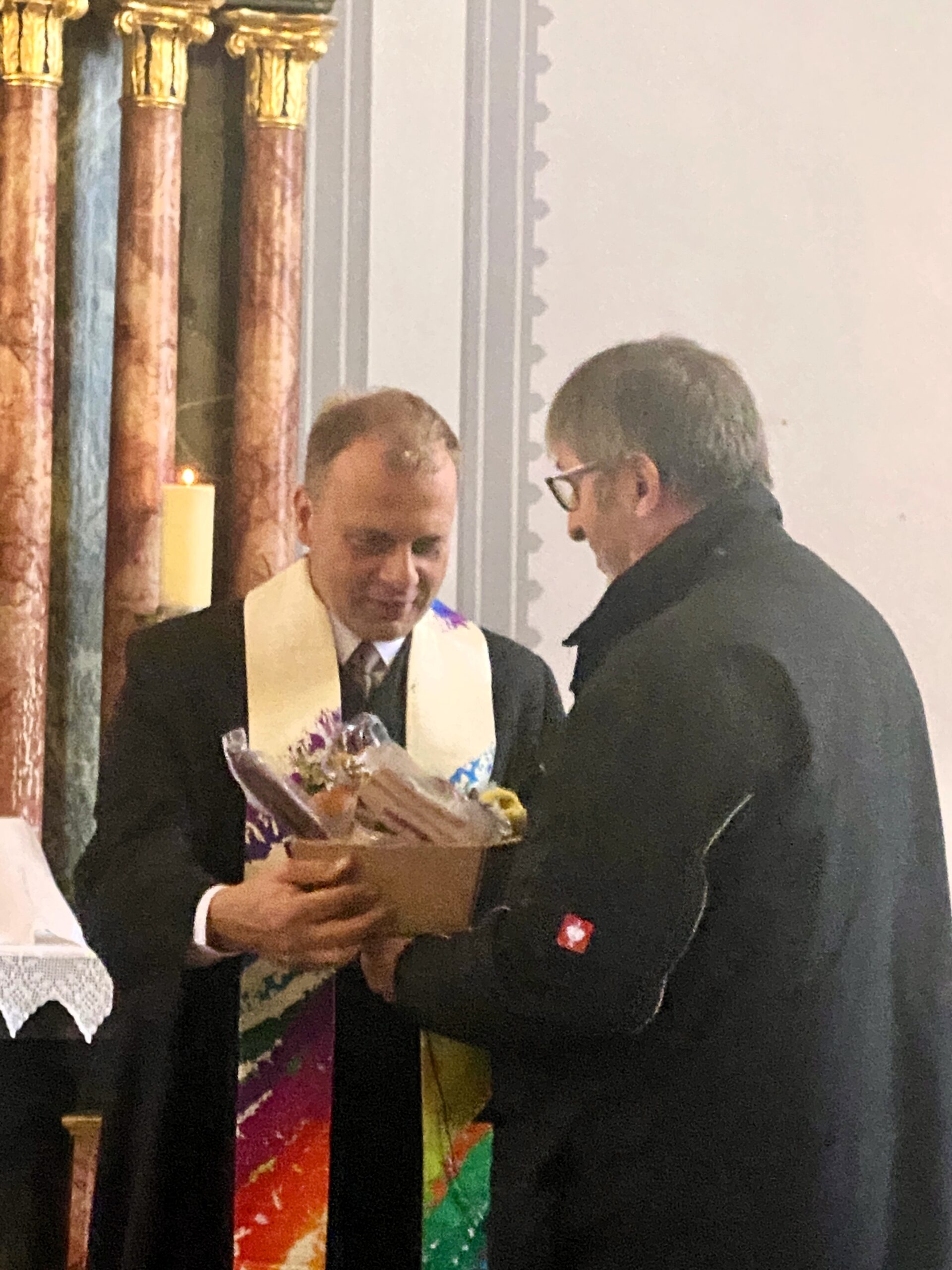 Eine nachträgliche Geburtstagsüberraschung wurde unserem Lektor Peter Kerschbaumer am dritten Adventsonntag gemacht: nach dem eigentlichen Gottesdienst sang „Mühlgraben plus“ zwei Segenslieder für den Jubilar, Kurator Eichmann überreichte einen Geschenkskorb mit kulinarischen Schmankerln aus der Region und die Bibelkreis-Mitglieder stellten sich mit einer köstlichen Kaffee-Walnuss-Torte ein, die von Ida Weber übergeben wurde. Die Kirchengemeinde stimmte spontan „Happy Birthday“ an. Dem Geburtstagskind hat es sichtlich gefallen…!
